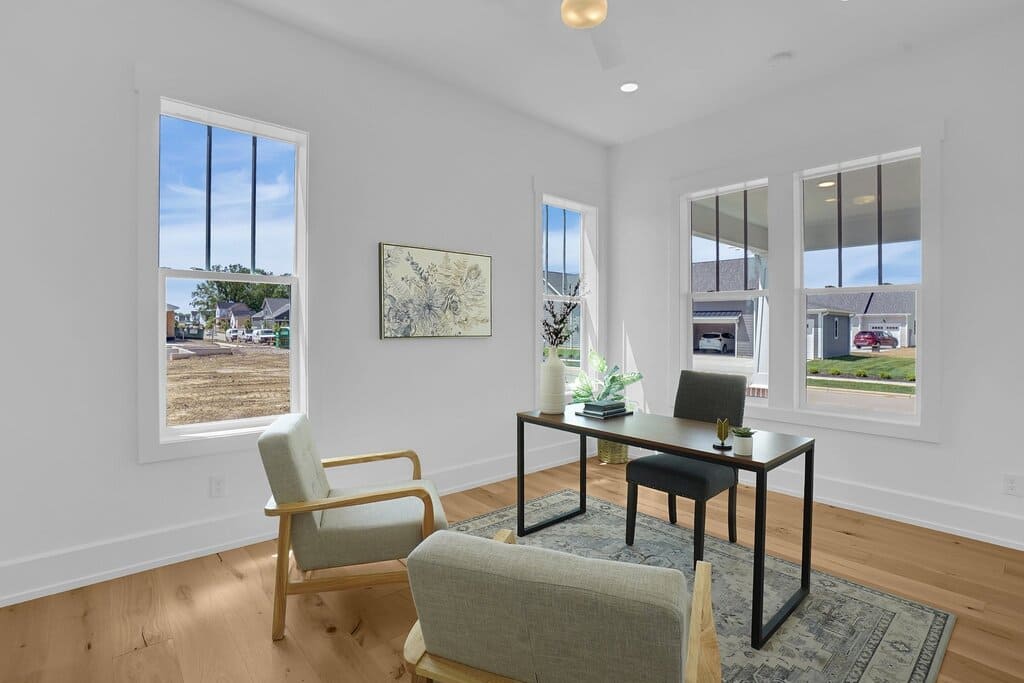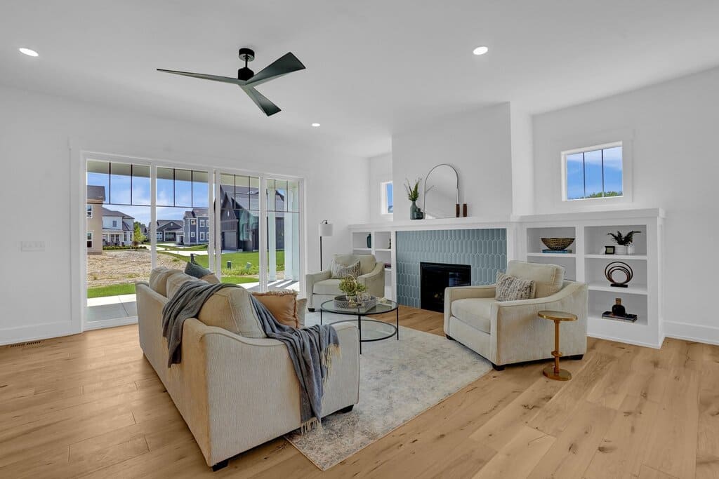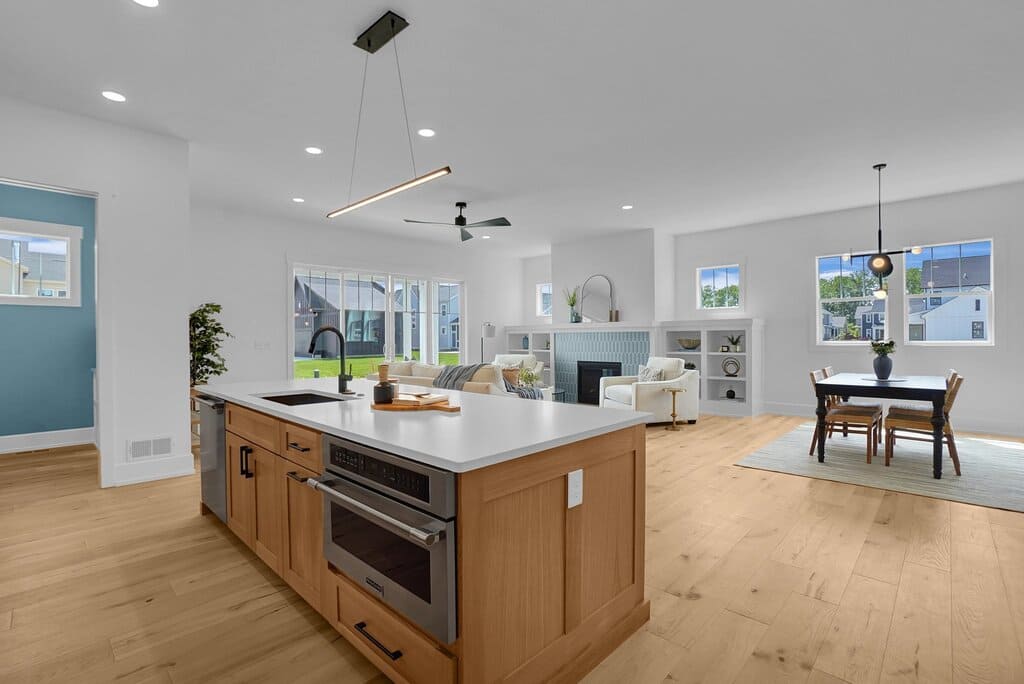 The Craftsman in Evans Farm features timeless curb appeal paired with a thoughtfully designed modern interior. The classic front porch and detailed exterior trim welcome you into a bright, open layout filled with natural light, warm wood accents, and carefully selected finishes.