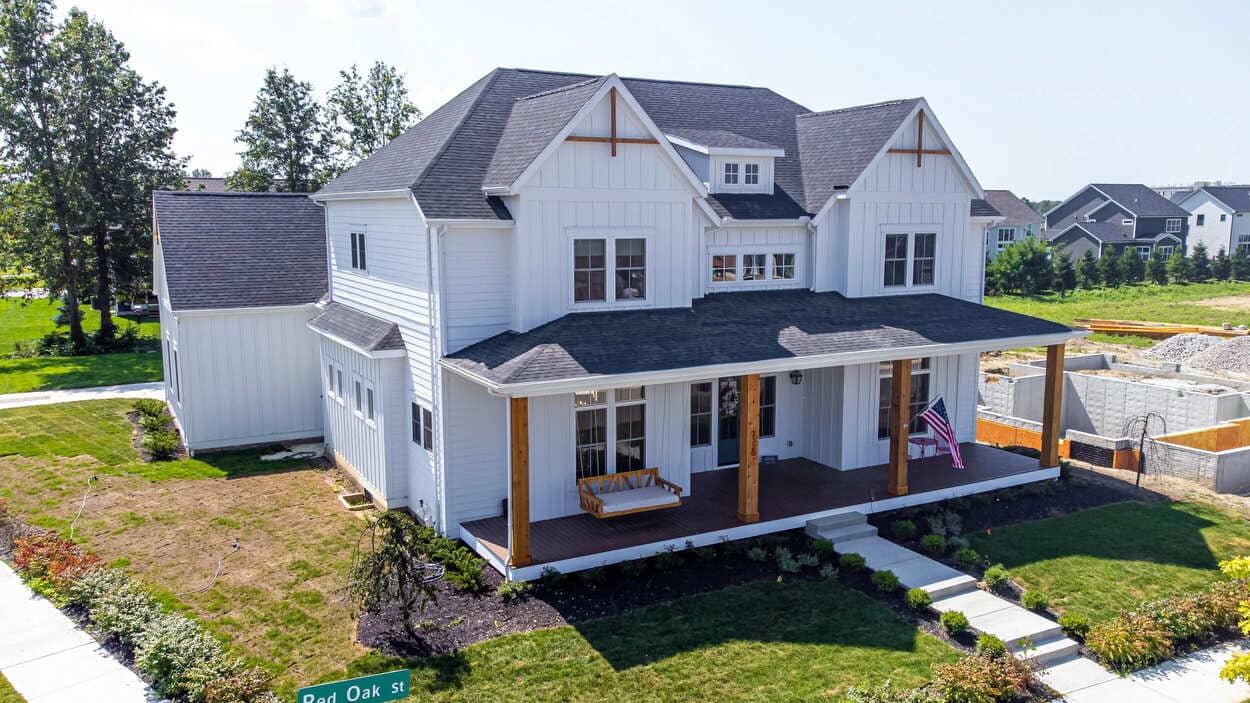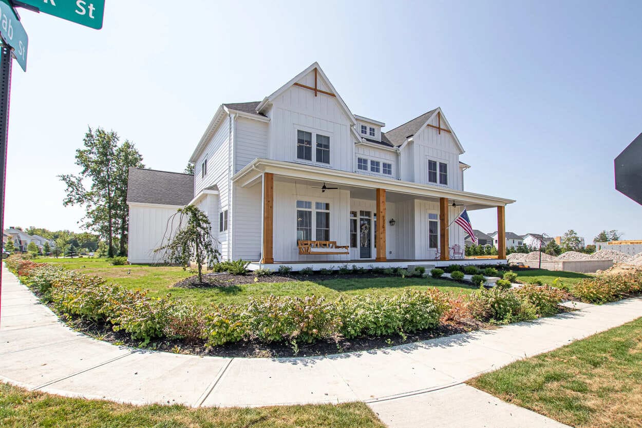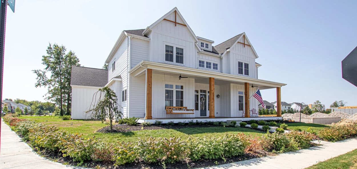The Original Model in Evans Farm brings together classic craftsmanship and modern comfort in one of the community’s most sought-after locations. A welcoming front porch and crisp farmhouse details set the tone before stepping into a bright, open layout filled with natural light, warm wood flooring, and a beautifully designed kitchen